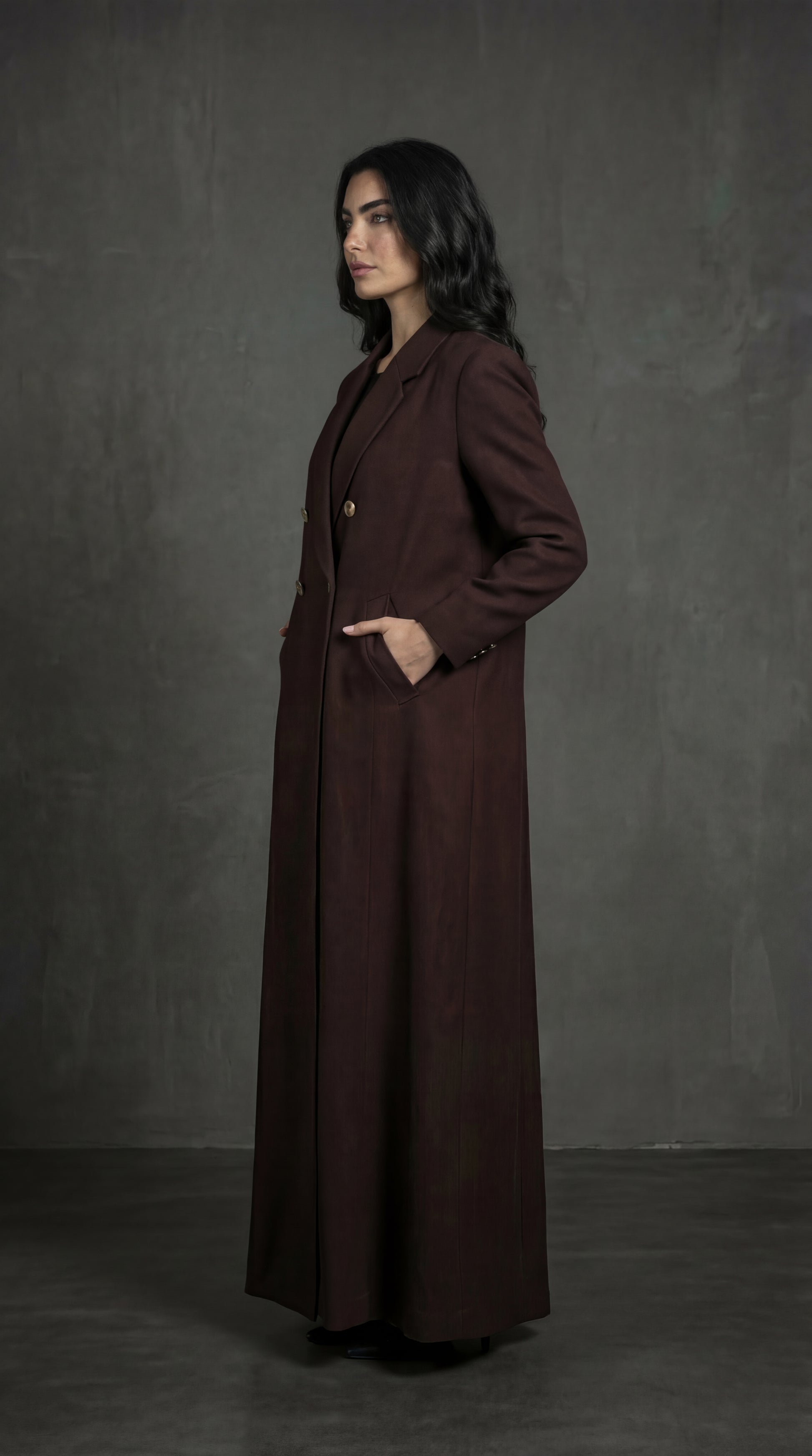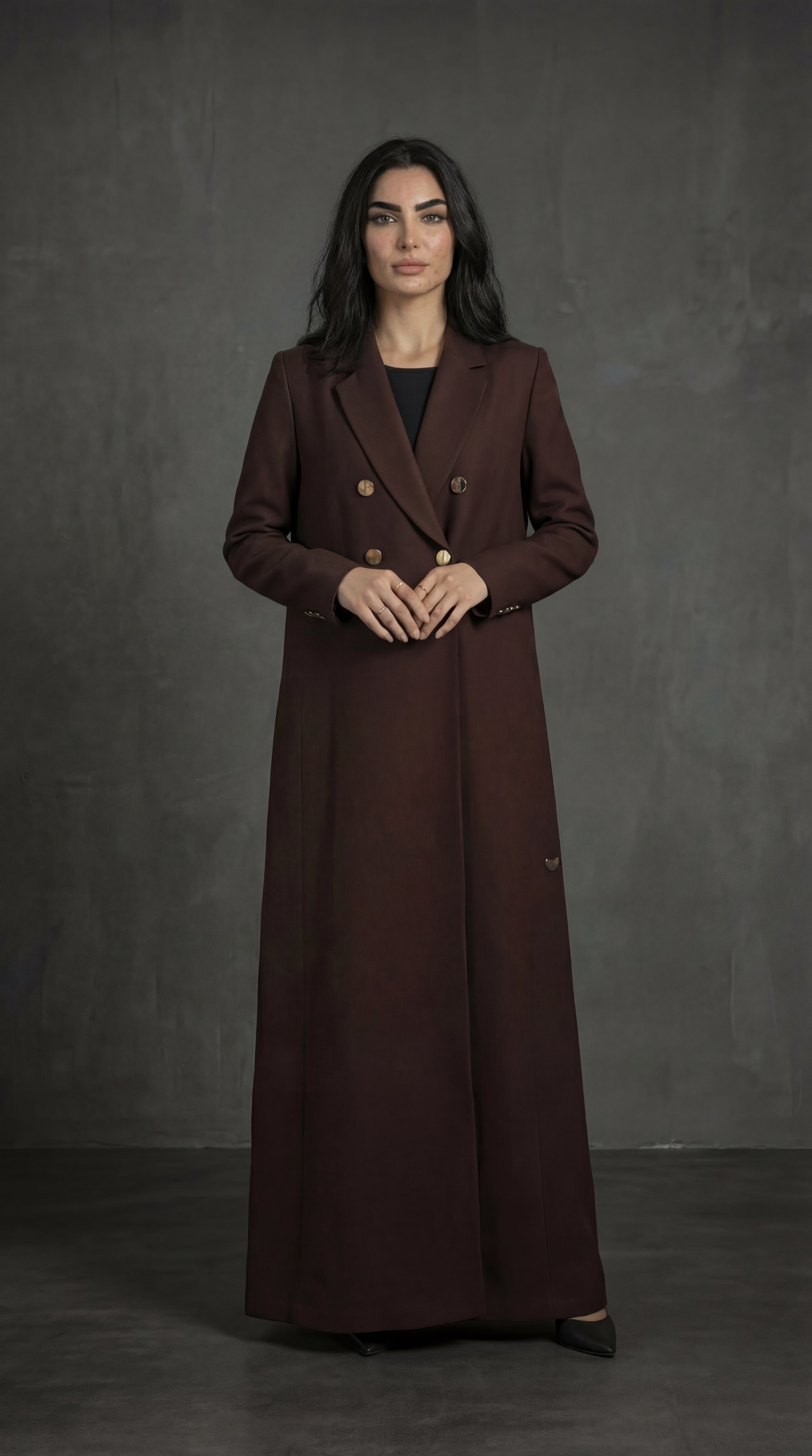 For the woman who redefines presence — “Mocha Command” fuses earthy tones with tailored power, finished with gold-button detailing that speaks softly but rules firmly.